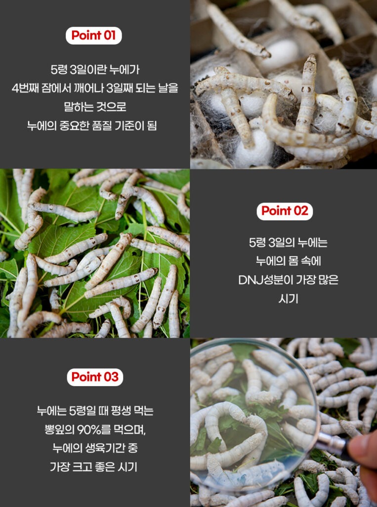 검증된 국내산 5령3일 누에의 생명력을 직접 경험하십시오.