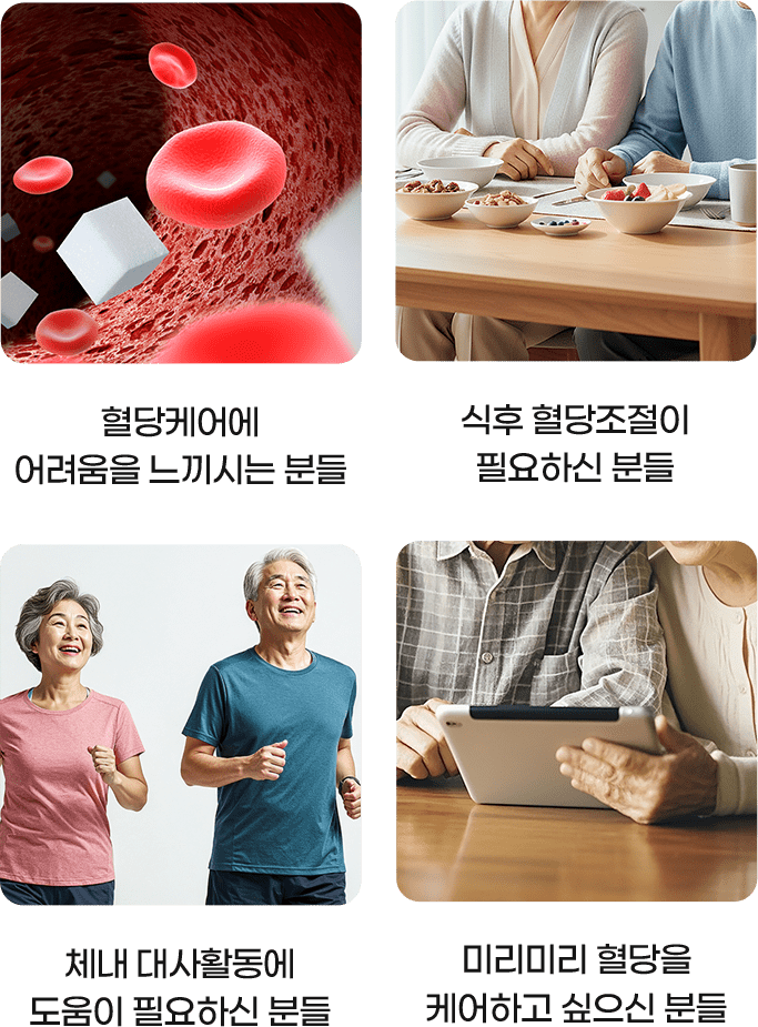 식후 혈당 억제를 넘어선 진짜 '혈당조절'을 경험하십시오.