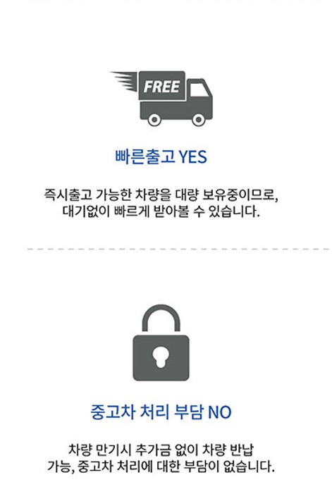 국산차, 수입차, 전기차 등 차종에 상관없이 즉시 출고 가능한 매물을 상시 대량 확보하고 있습니다.