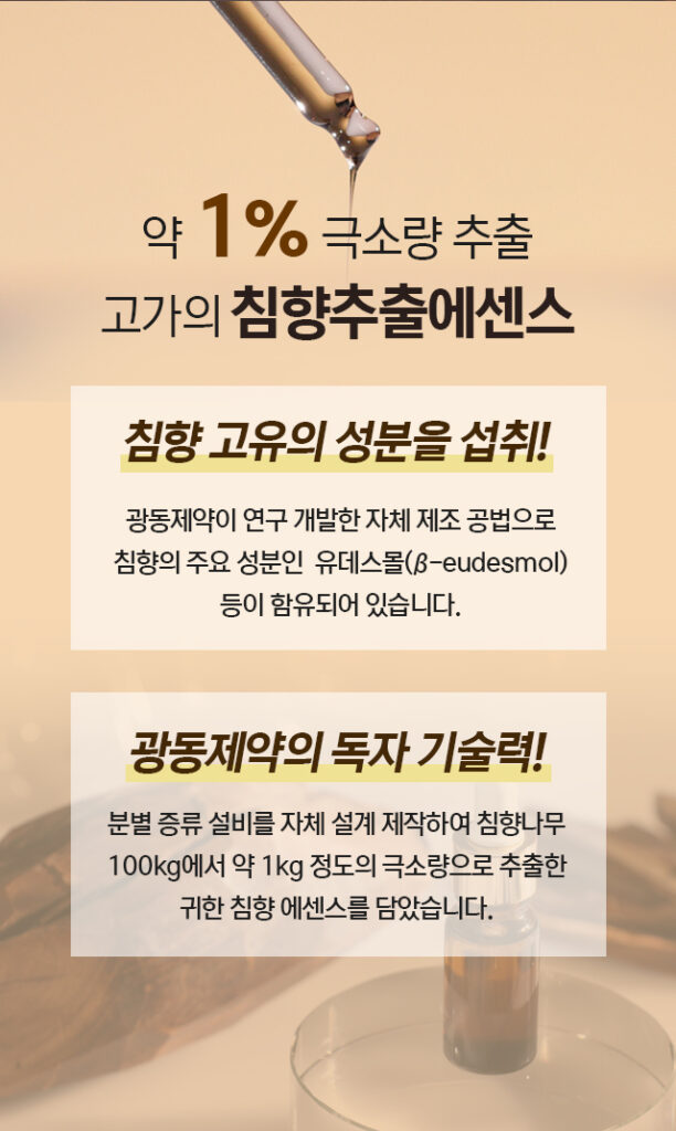 ■ 광동제약의 독자 기술력으로 추출한 국내 제조 침향추출에센스 함유