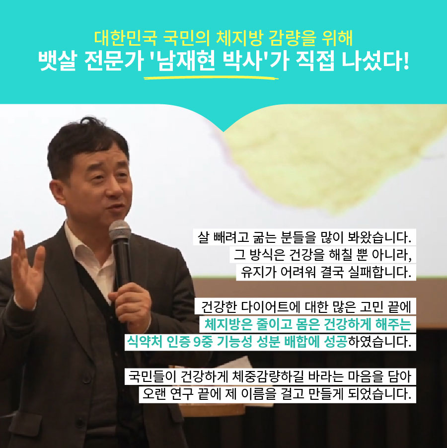 남재현 박사가 집접 심혈을 기울여 성분 배합한 건강한 체지방 다이어트