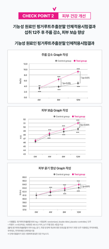 체지방 감소, 피부 건강(자외선 케어·보습), 에너지 대사까지 3중 기능성을 집중 지원합니다.