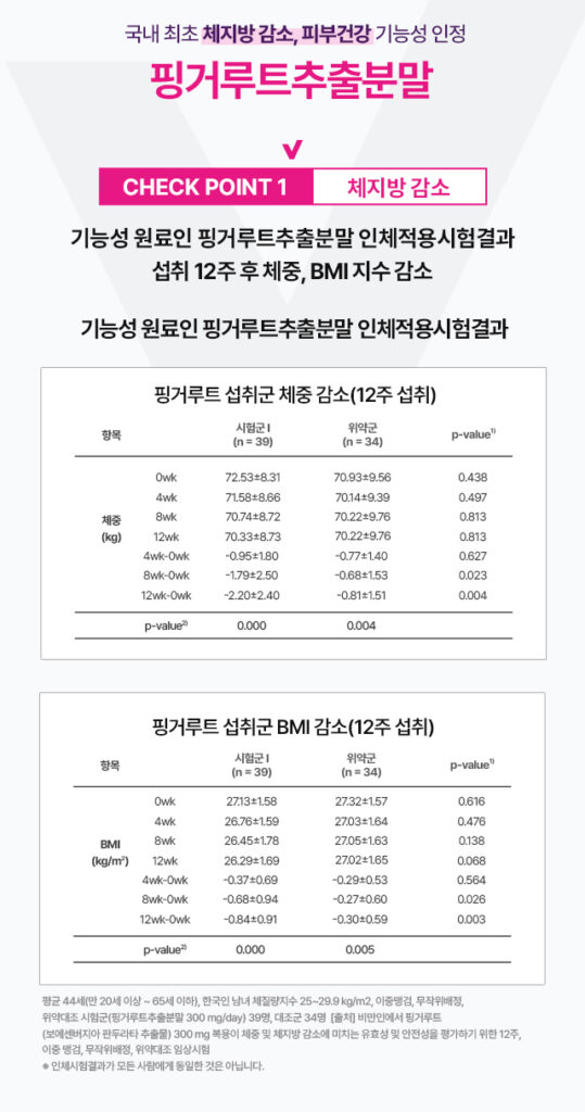 *핑거루트추출분말(판두라틴) → 체지방 감소 / 피부기능 개선