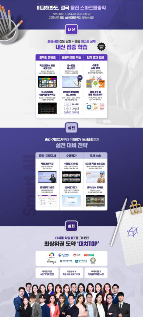 스마트올중학은 업계 최초로 대한민국 교육 1번지, 대치동 TOP 학원과 단독 제휴!