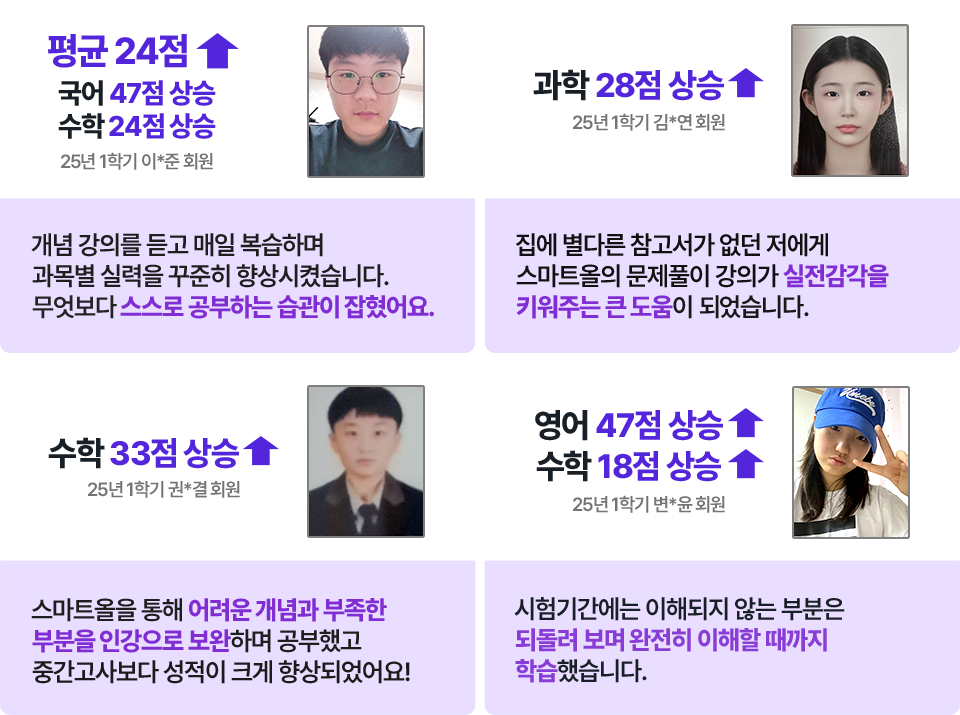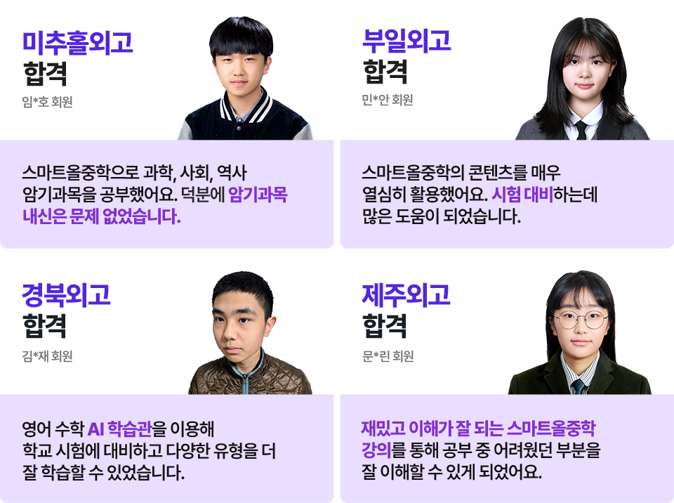 | 맞춤 관리 | 1:1 AI 분석 맞춤 문제 추천 & 전문 담임 교사 유선 상담 |