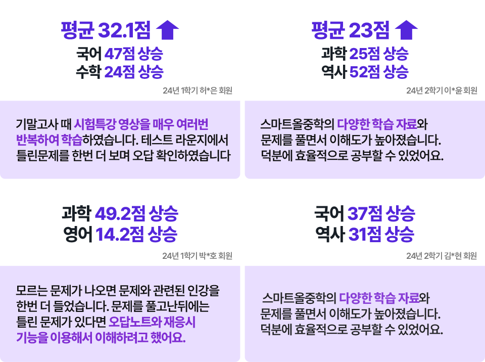 👉 학교 교과서와 진도에 맞춘 커리큘럼과 20분 올인원 강의로 내신 대비에 최적화되어 있습니다.