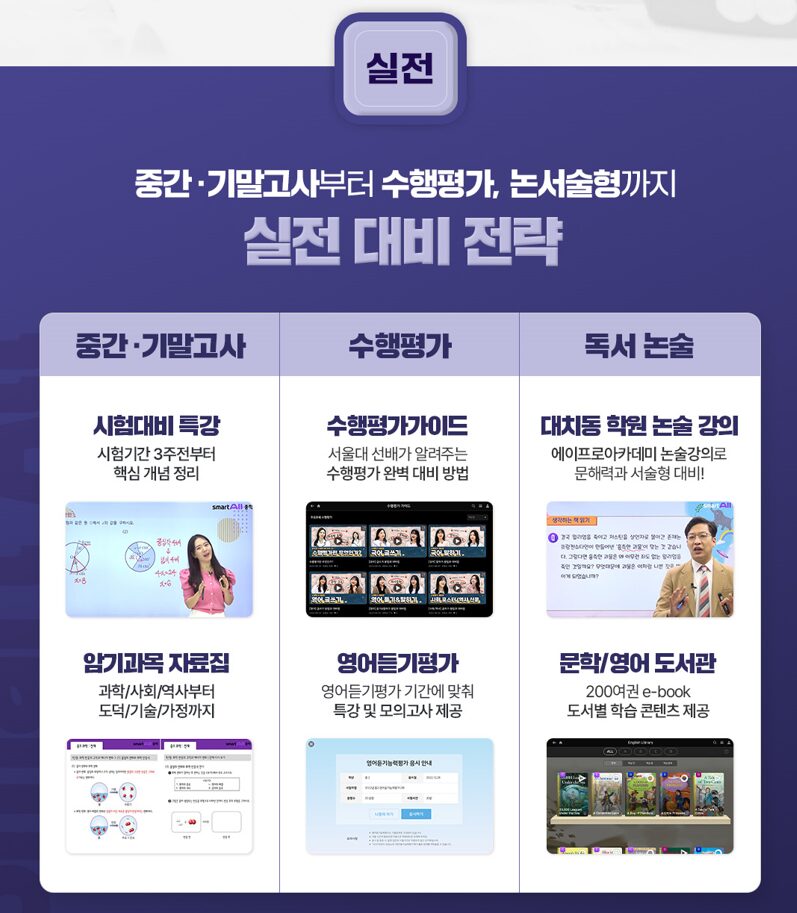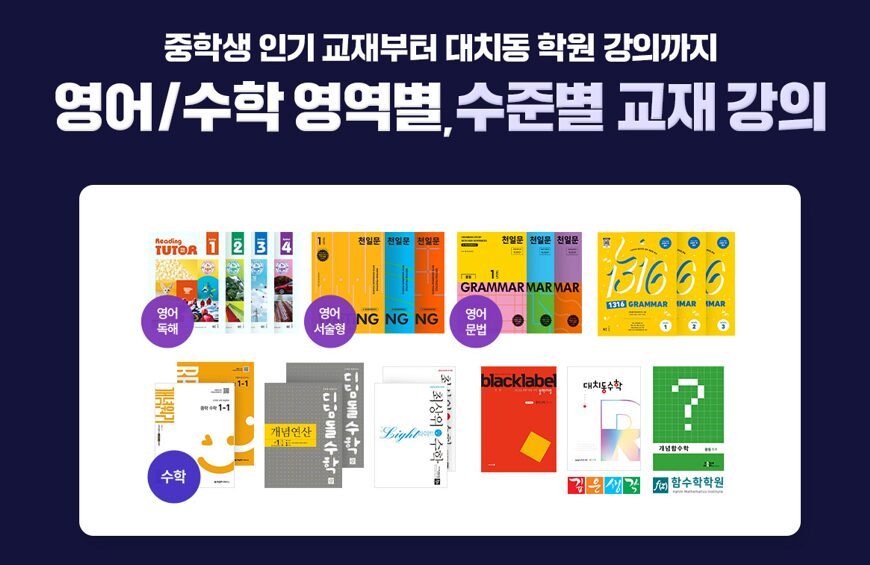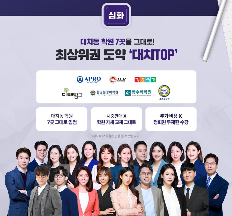 | 프리미엄 강의 | 대치동 TOP8 학원 단독 입점 (수학, 영어, 국어, 논술 등) |
