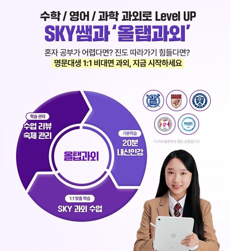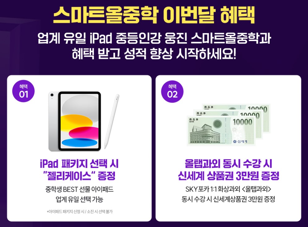 | 학습 기기 | 업계 최초 아이패드+애플펜슬 패키지 또는 갤럭시탭 선택 |