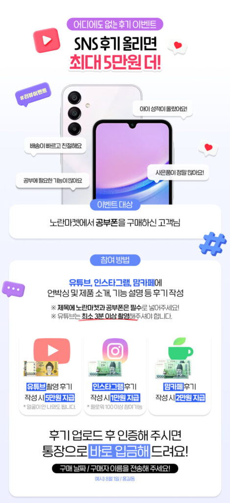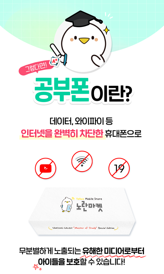 본 페이지는 노란마켓 공부폰에 대한 정보 안내 및 상담 예약을 위한 페이지이며, 휴대폰 개통 및 계약은 노란마켓에서 최종 진행됩니다.