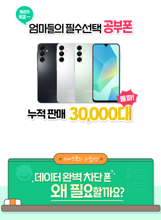 데이터가 완전 차단된 휴대폰으로 흔히 공신폰 또는 공부폰이라고 부릅니다. 주 수요층은 초등학교 저학년 어린이들과 고3 수험생입니다. 어린 자녀들이 일찍부터 모바일 게임이나 인터넷에 중독되는 것을 경계하는 초등학교 입학 또는 저학년 자녀들의 부모님들이 가장 주된 고객입니다. 학군지 수험생들의 경우 스스로가 학업에 집중하기 위해 공신폰을 찾기도 하고 보통 부모님들께서 많이 권유하십니다.